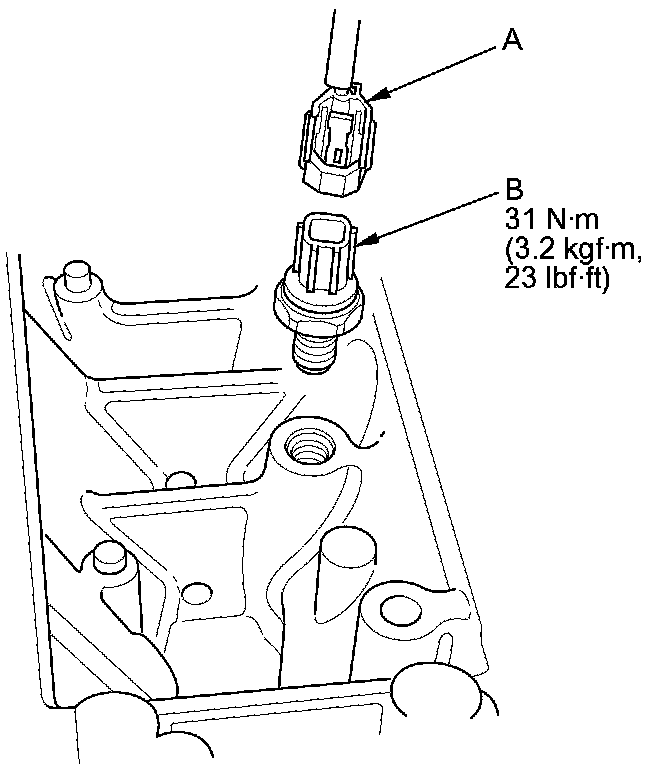 3. Disconnect the knock sensor 1P connector (A), then remove the knock sensor (B).