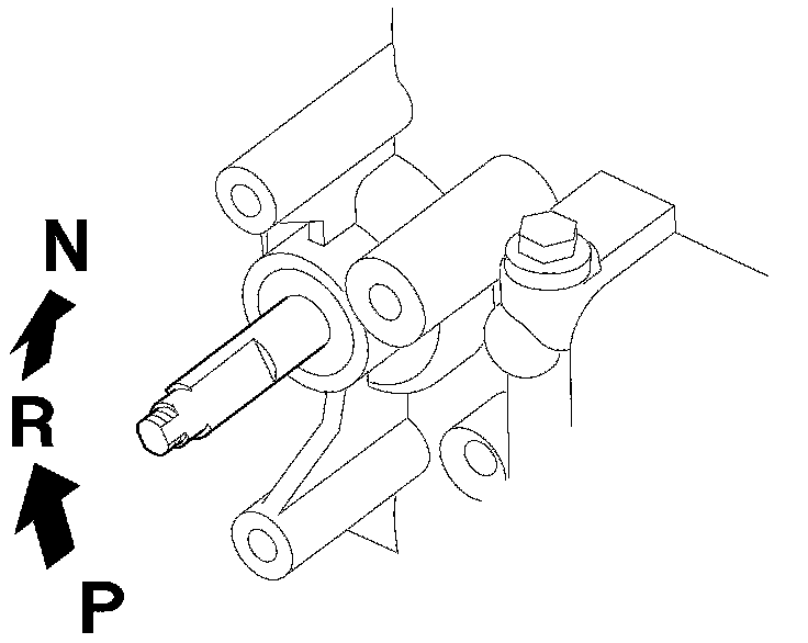 11. With a 6.0 mm wrench, turn the selector control shaft fully counterclockwise (viewed from the shaft end) to the P position. Turn the selector control shaft back two click-stopped positions so that it is in the N position.