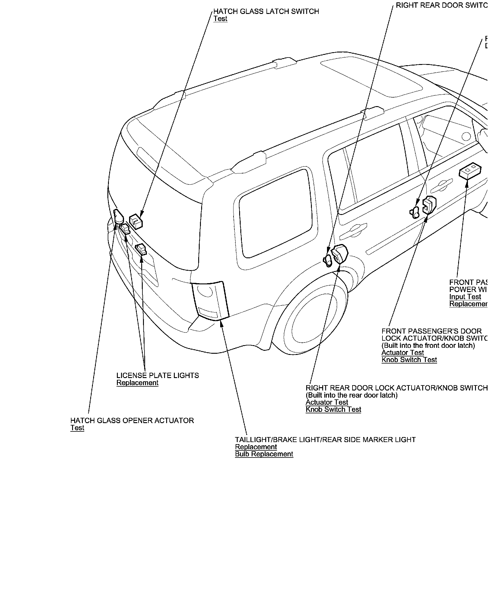 Keyless/Power Door Locks/Security System Component Location Index