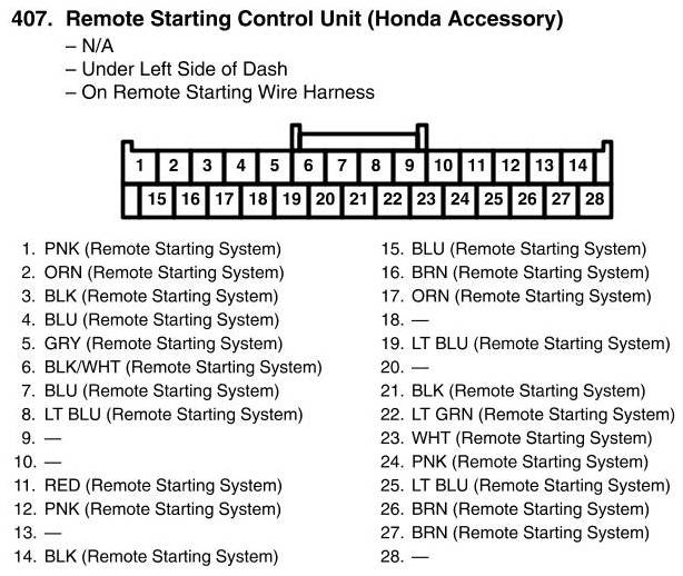 Remote Starting Control Unit Connector View (Honda Accessory)