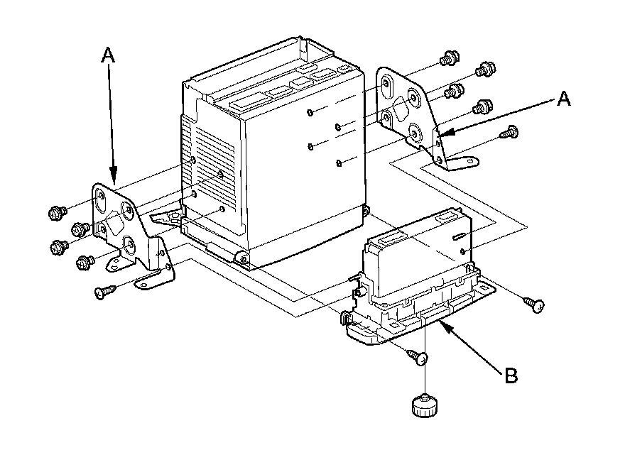3. Remove the self-tapping screws and separate the audio unit and the HVAC control unit (B).