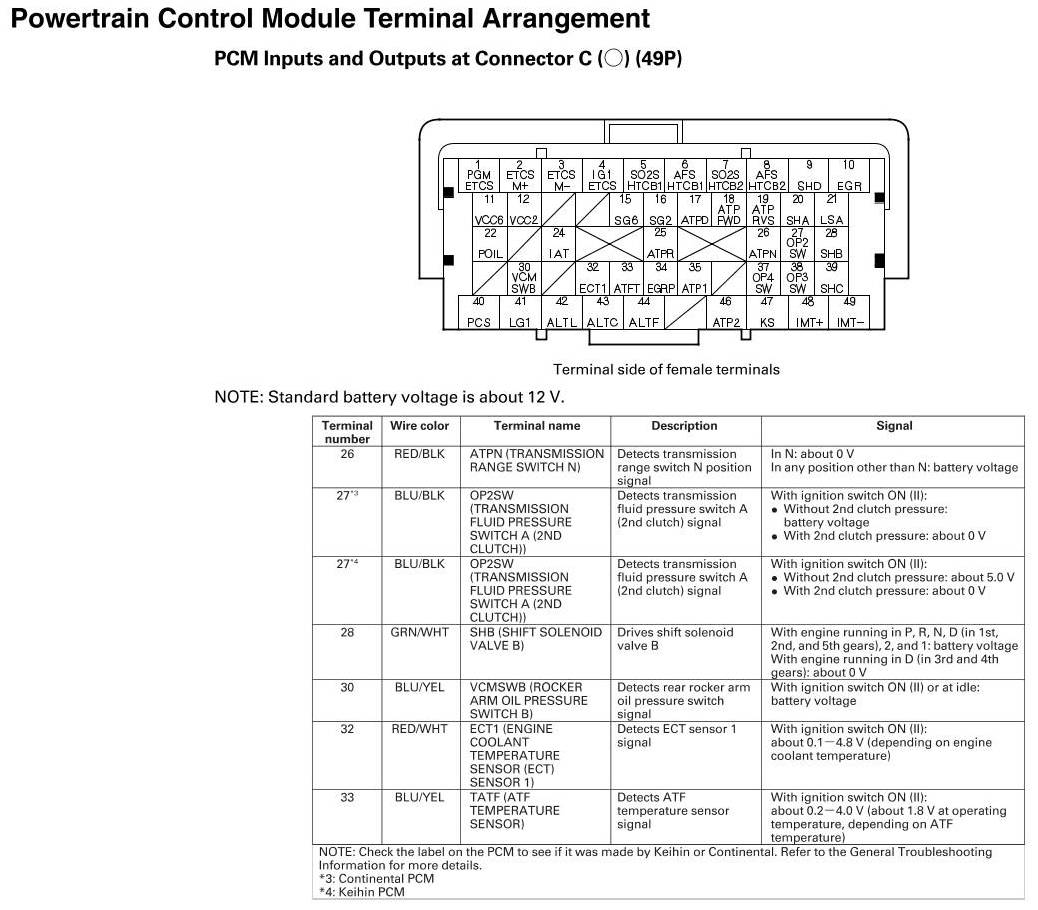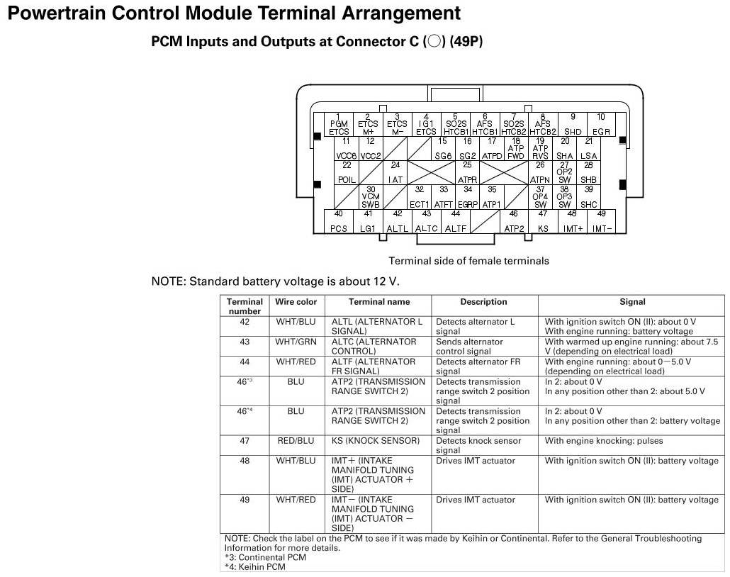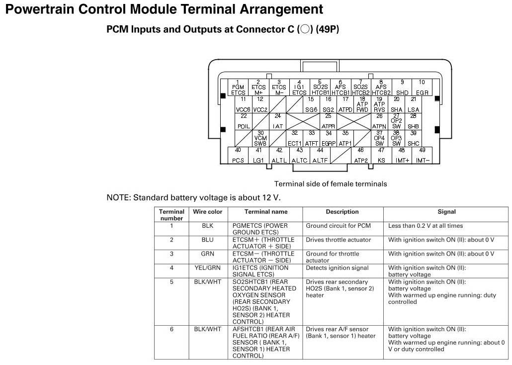 PCM Inputs And Outputs At Connector C
