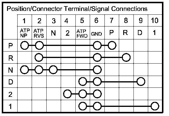 8. The transmission range switch test is finished if the test results are OK. If there is no continuity between any terminals, check the transmission range switch installation. If the transmission range switch installation is OK, replace the transmission range switch Service and Repair.