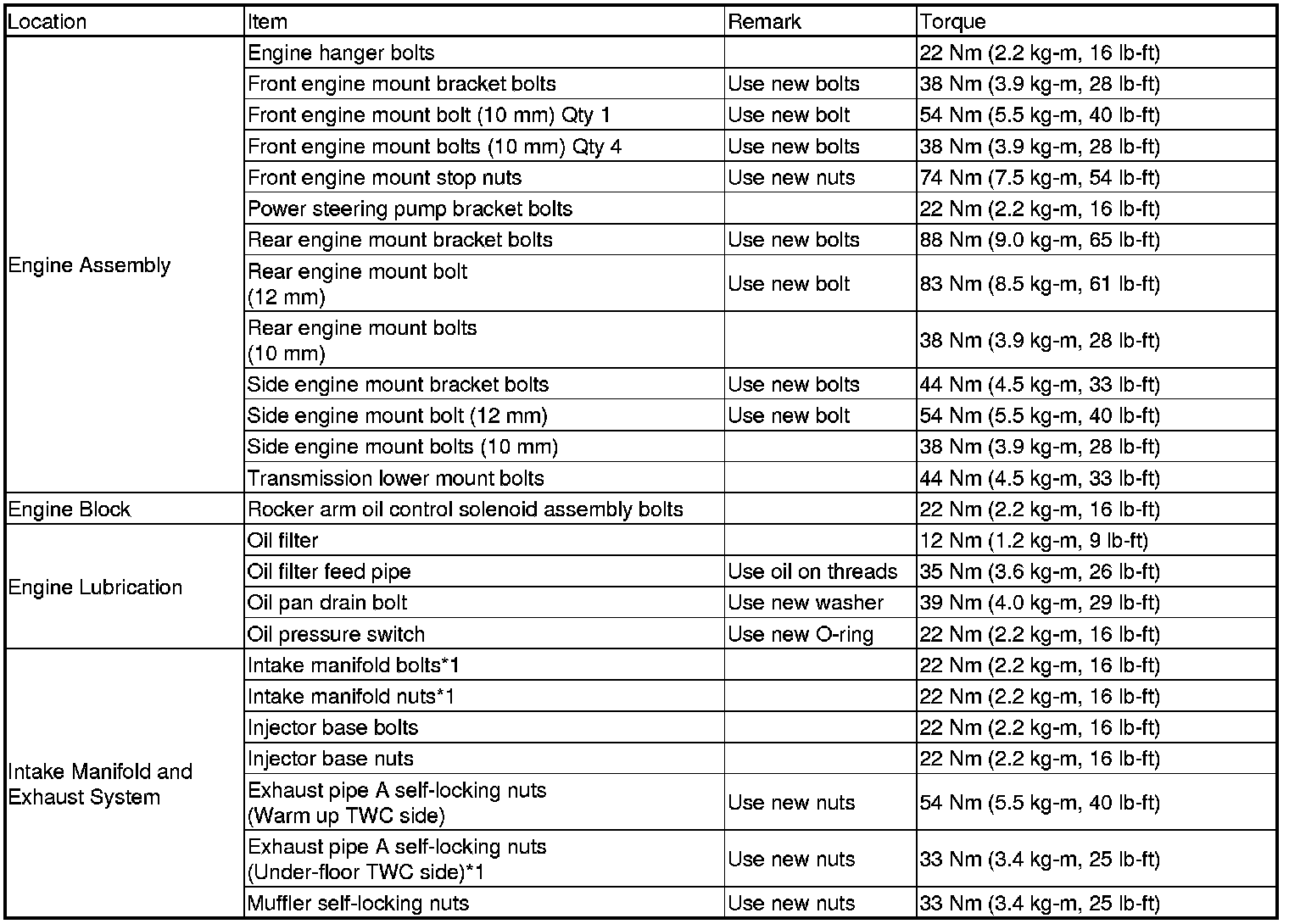 Torque Specifications