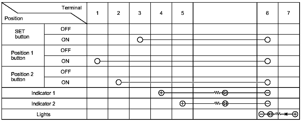 4. Check for continuity between the terminals in each switch position according to the table.