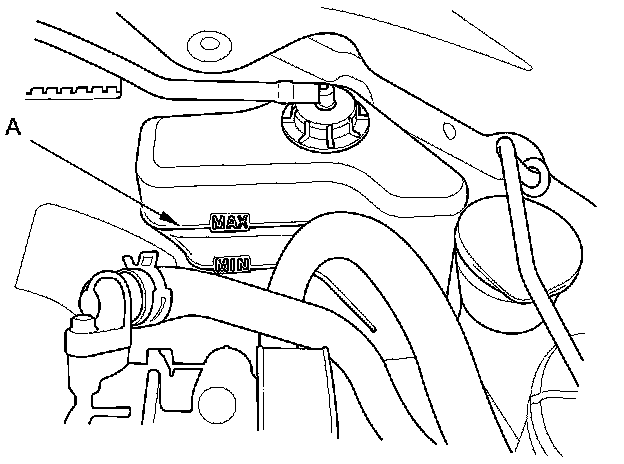 5. Fill the coolant reservoir to the MAX mark (A) with Honda Long Life Antifreeze/Coolant Type 2.