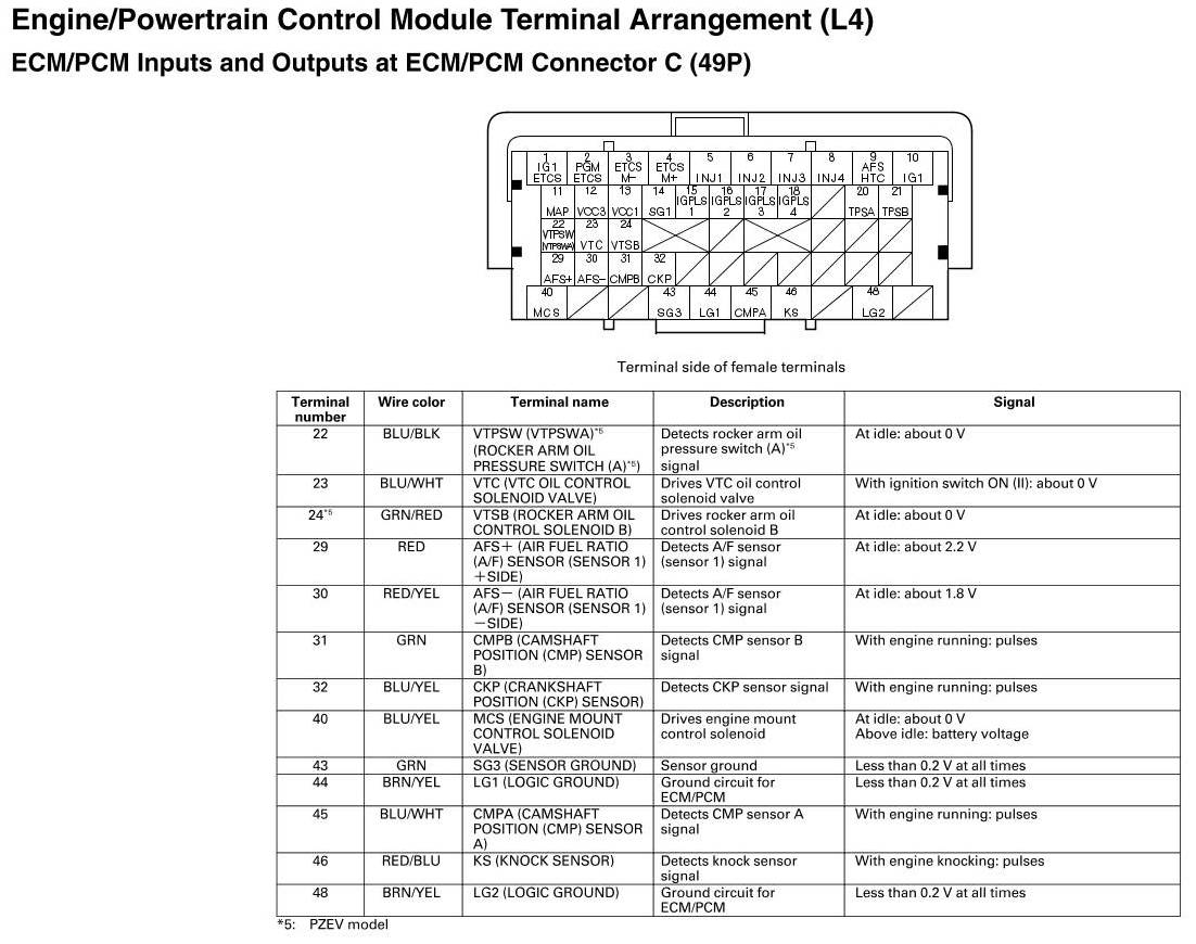 ECM/PCM Inputs And Outputs At Connector C