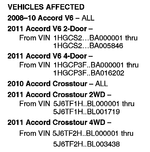 See VEHICLES AFFECTED