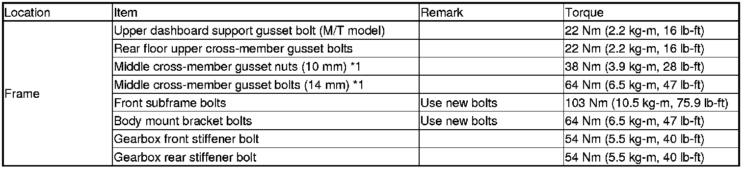Refer to the service data for the bolts/nuts not indicated here.