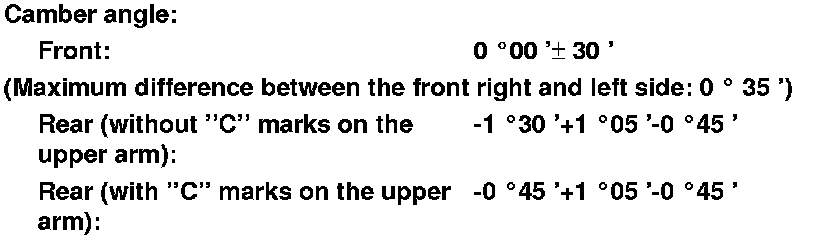 - If the measurement for the front camber is outside the specification, go to front camber adjustment.
