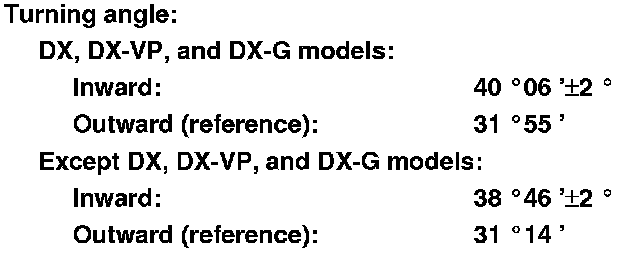 1. Turn the wheel right and left while applying the brake, and measure the turning angle of both wheels.