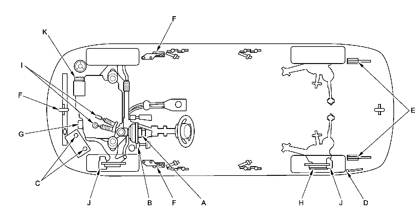 - Lubricate the following areas using the recommended lubricants and fluids.