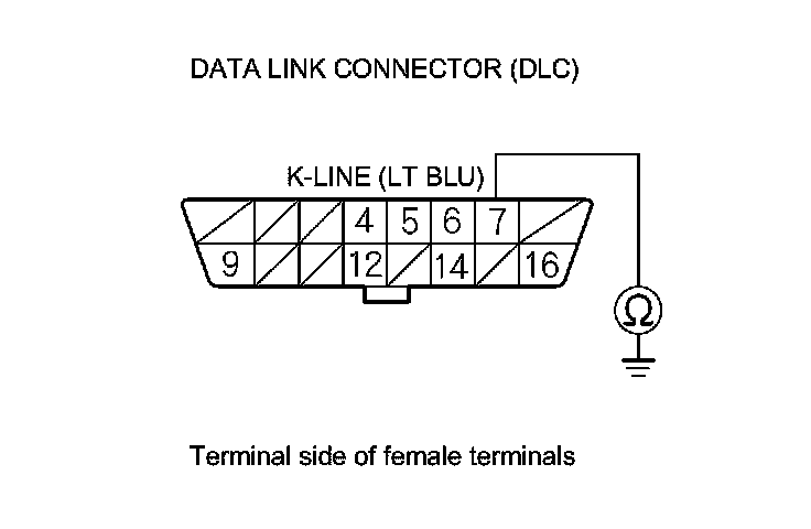 21. Check for continuity between DLC terminal No. 7 and body ground.