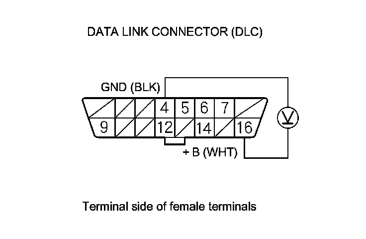 29. Measure the voltage between DLC terminal No. 16 and body ground.