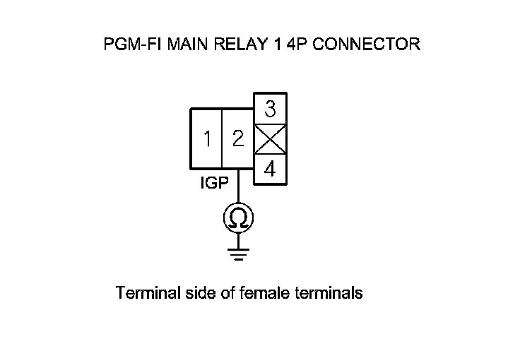 46. Check for continuity between PGM-FI main relay 1 4P connector terminal No. 2 and body ground.