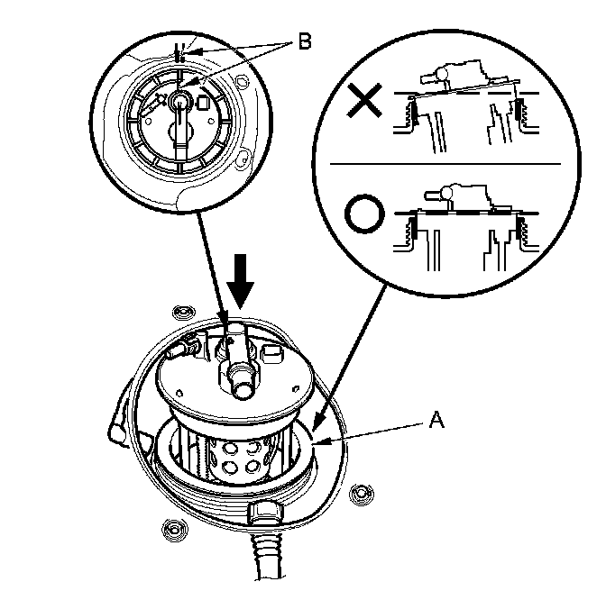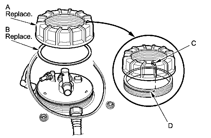 NOTE: To prevent a fuel leak, check the base gasket, visually or by hand, to make sure it is not pinched.