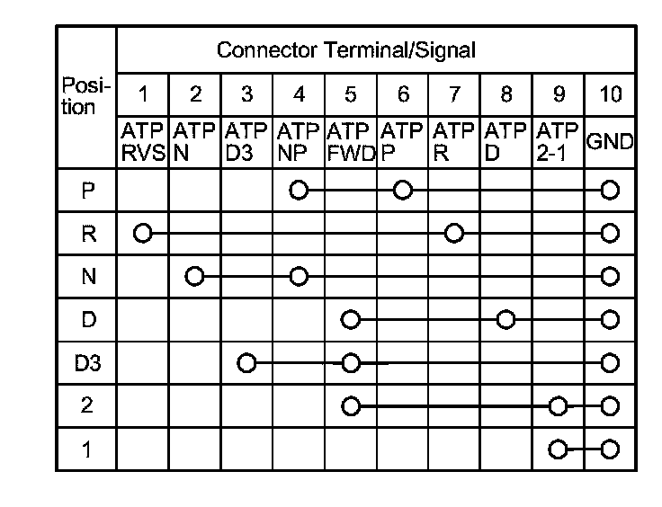 3. Check for continuity between terminals at the harness connector. There should be continuity between the terminals in the following table for each switch position.