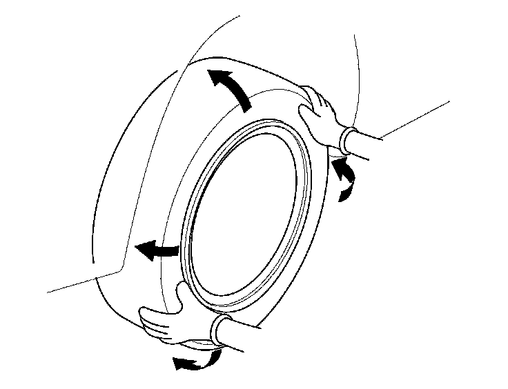 1. Set the steering column to the middle tilt position and telescopic positions. Center the steering wheel spokes, and install a steering wheel holder tool.