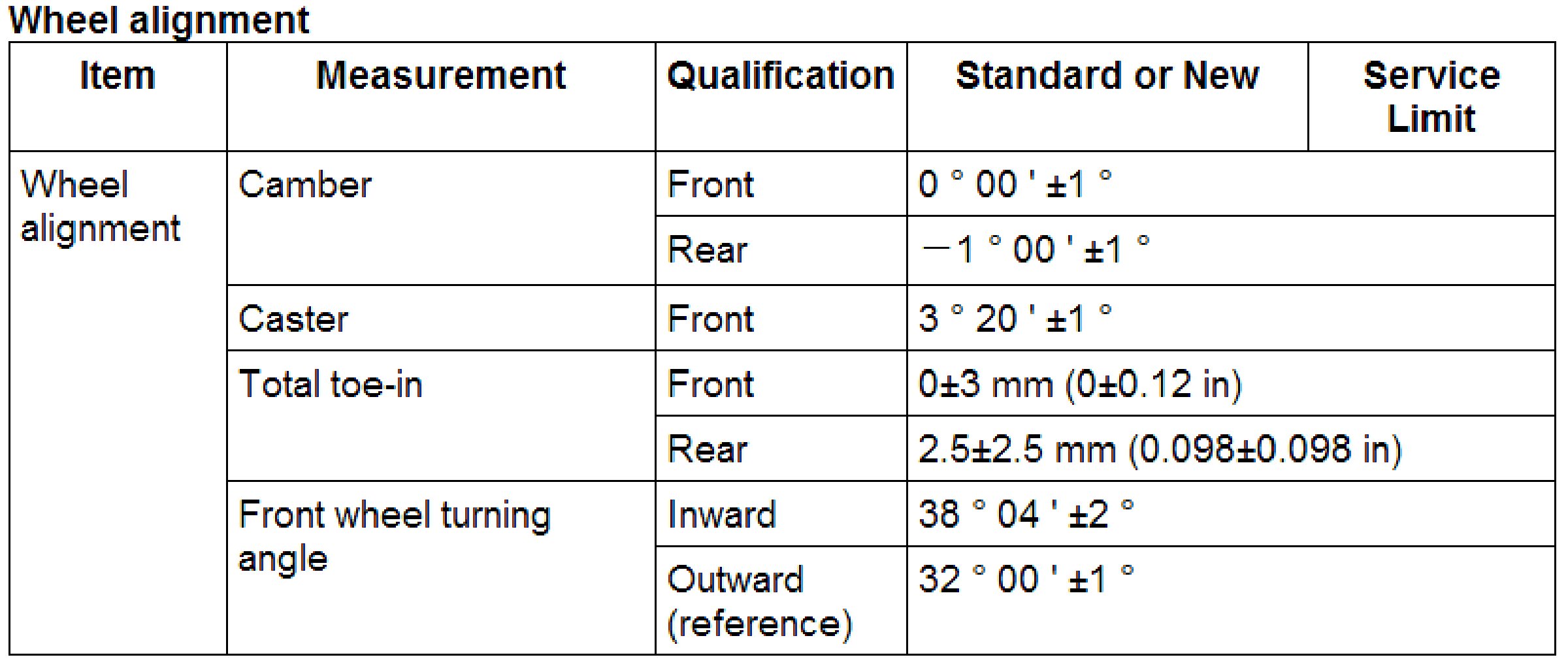 Wheel Alignment Specifications