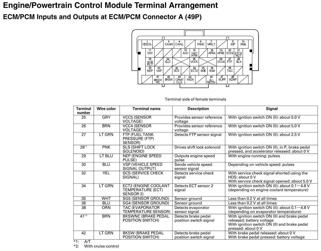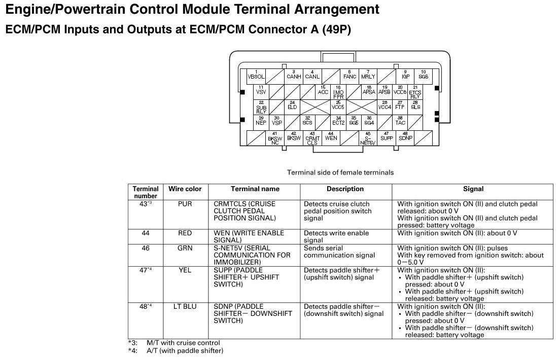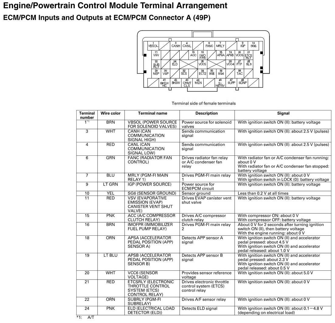 ECM/PCM Inputs And Outputs At Connector A
