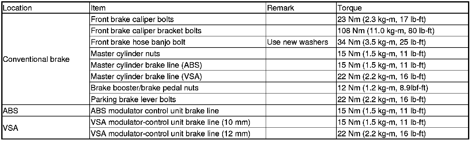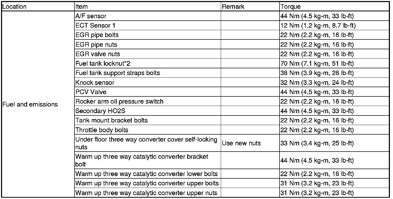 Torque Specifications