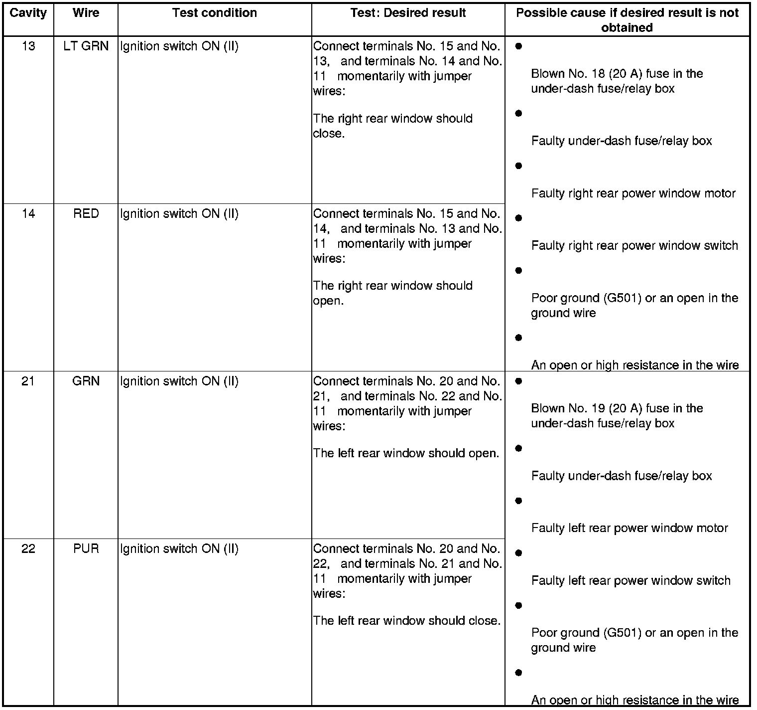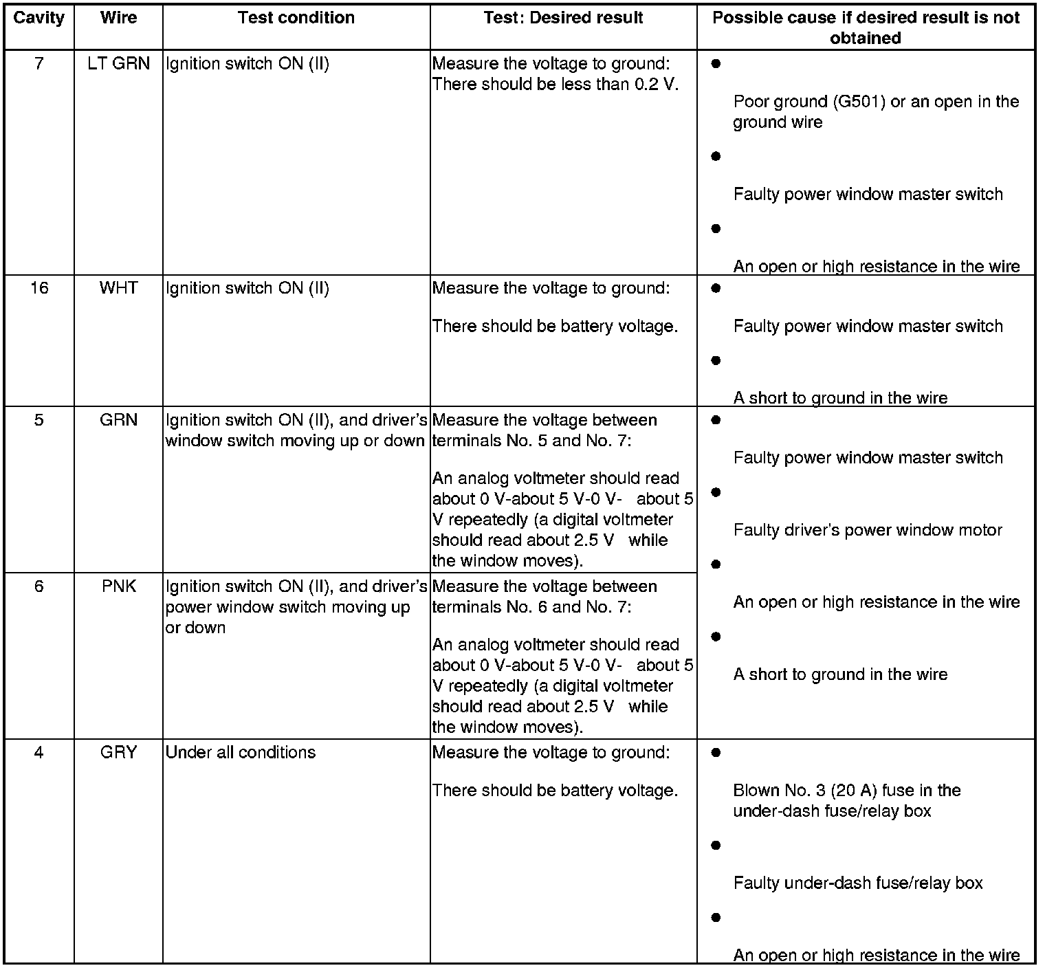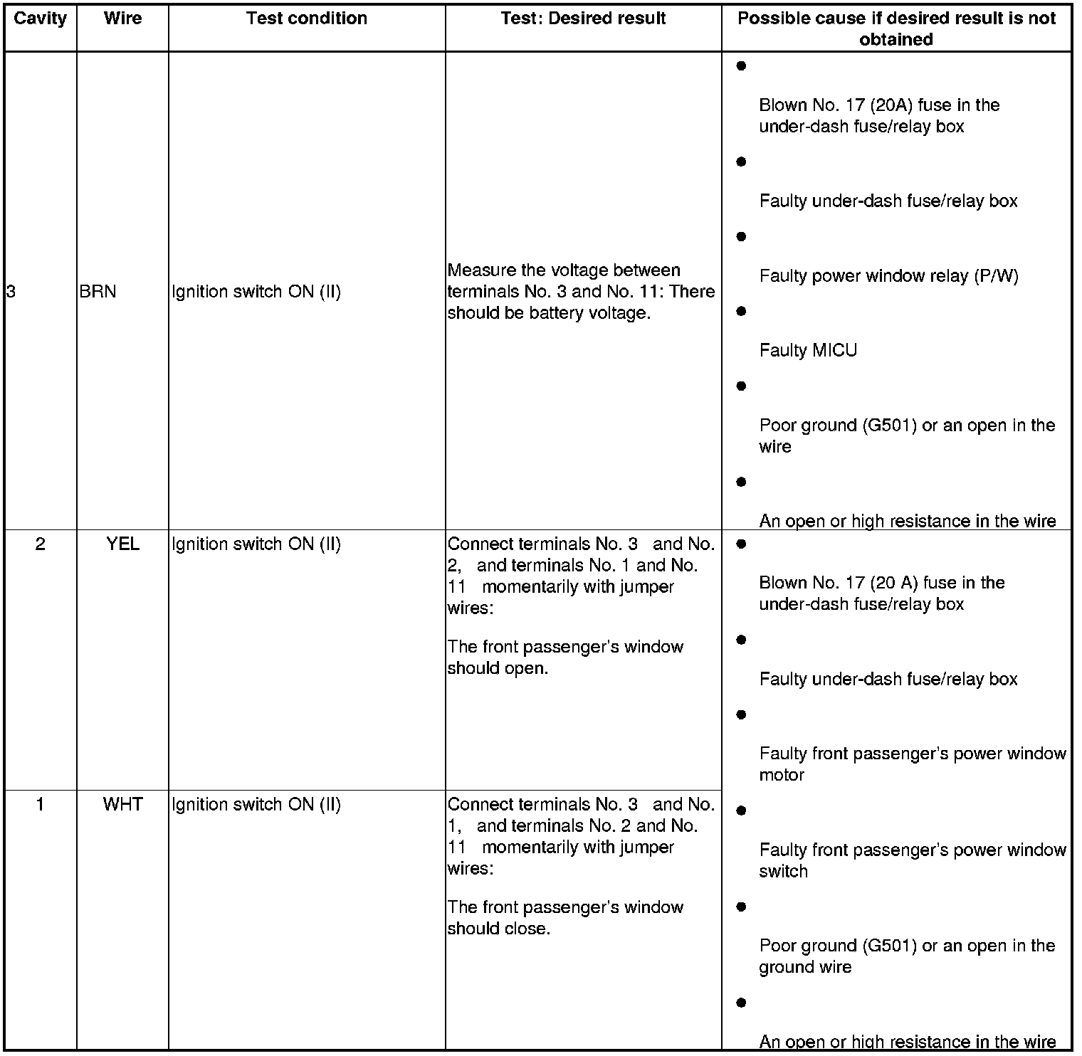 Home >> Honda >> 2011 >> Fit L4-1.5L >> Repair and Diagnosis >> Windows and Glass >> Windows >> Testing and Inspection >> Power Window Master Switch Input Test