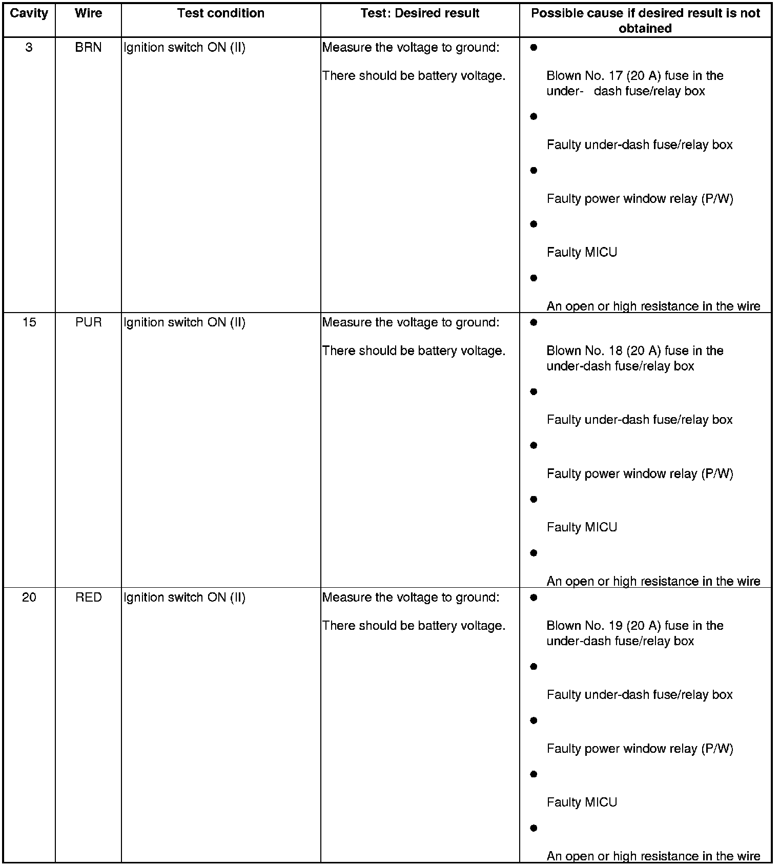 - If all the input tests prove OK, the control unit must be faulty; replace the power window master switch Power Window Master Switch Replacement.