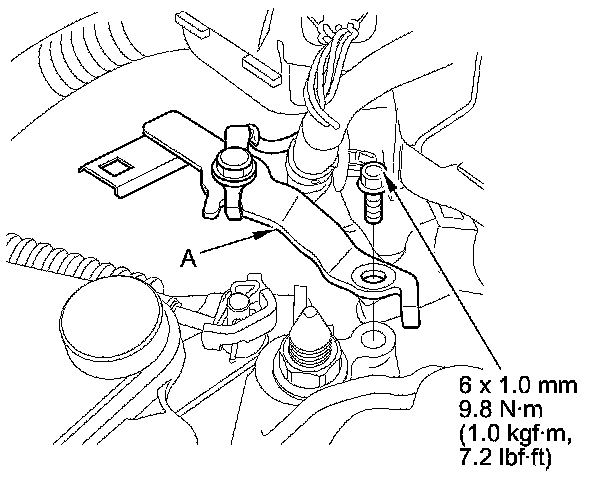 16. Install the ground terminal bracket (A).