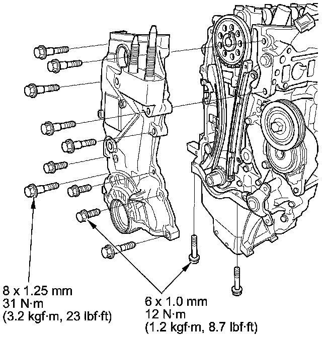 Tighten the chain case mounting bolts. Wipe off the excess liquid gasket from the