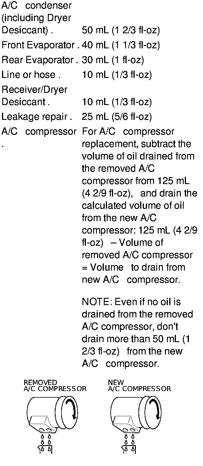 Add the recommended refrigerant oil in the amount listed if you replace any of the following parts.