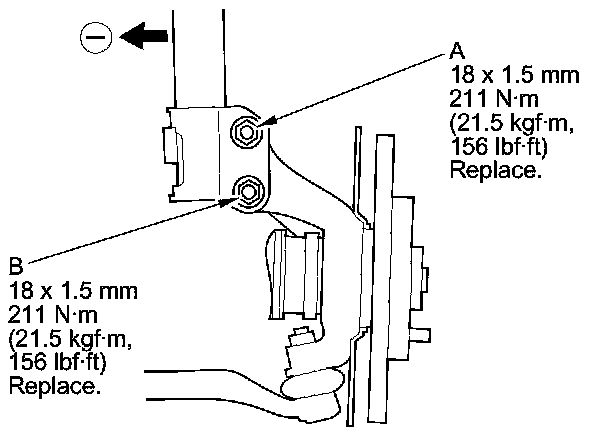 10. Replace the damper pinch bolt (A) with the adjusting bolt (B), and adjust the camber angle.
