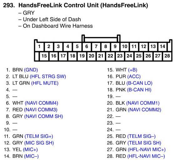 HandsFreeLink Control Unit Connector View