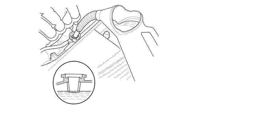 6. Pour Honda Long Life Antifreeze/Coolant Type 2 into the radiator up to the base of the filler neck.