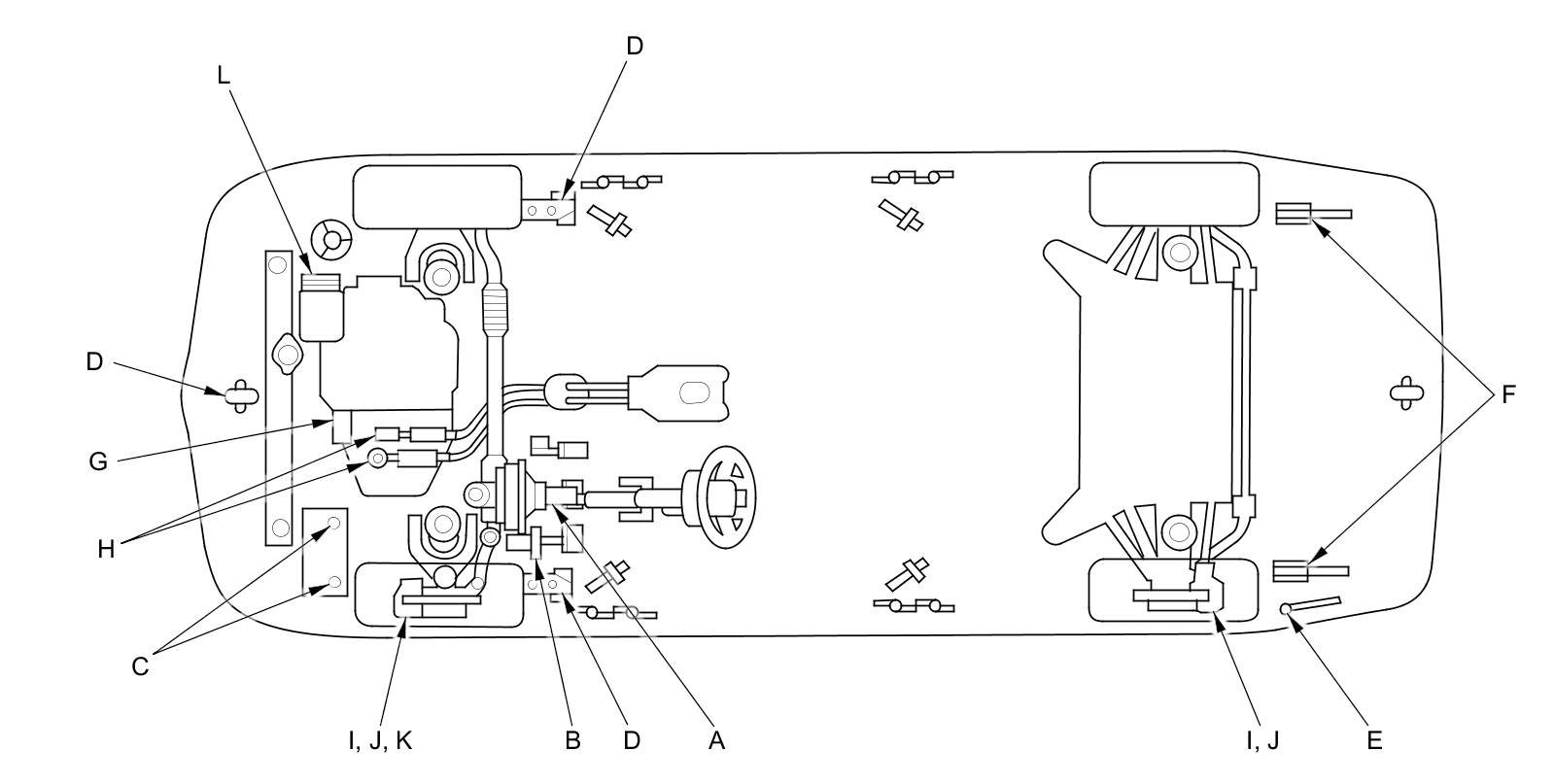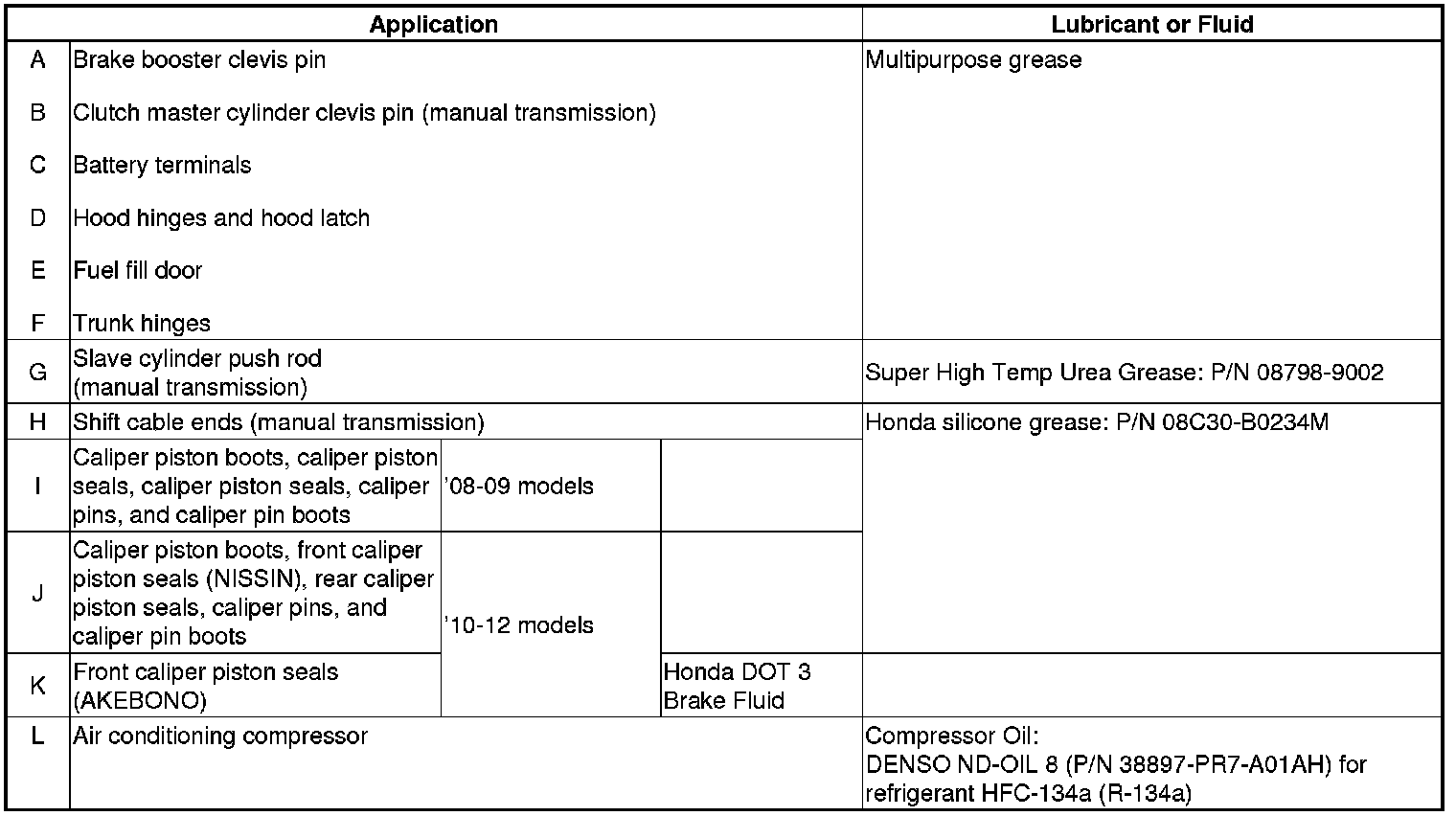 - Lubricate the following areas using the recommended lubricants and fluids.
