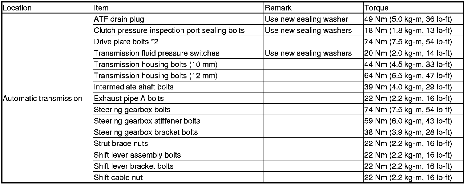 *Refer to each S/M section for the bolts/nuts not indicated here.