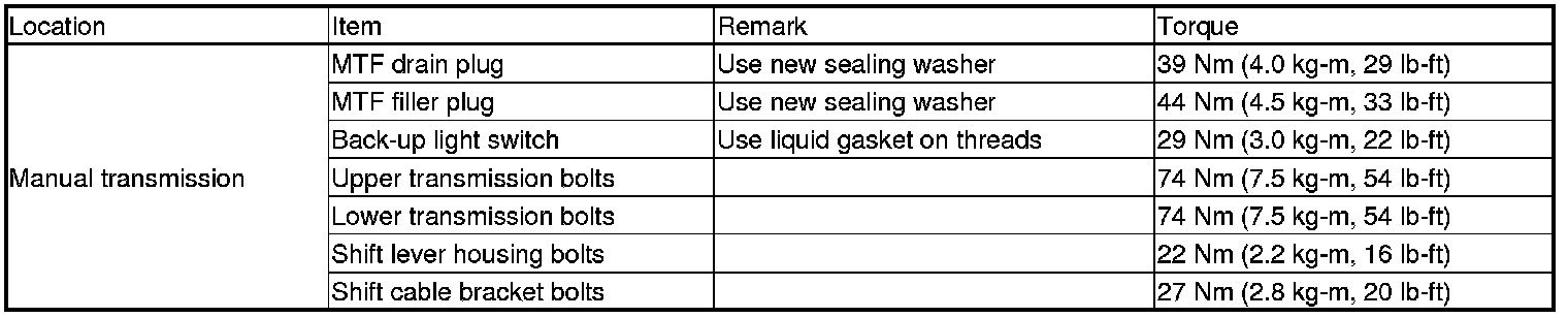 Torque Specifications