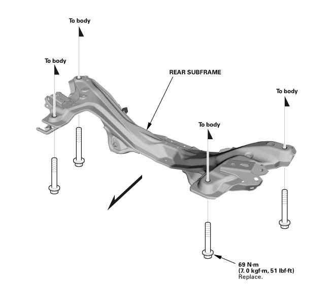 NOTE: After removing the subframe mounting bolts, be sure to replace them with new ones.