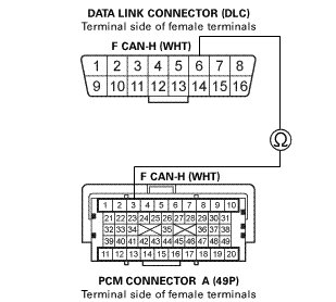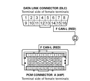 -NO- Repair an open in the F CAN-L wire between the PCM (A4) and the DLC terminal No. 14.