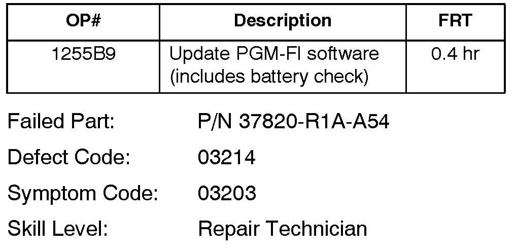 4. Update the PGM-FI software. Refer to Service Bulletin 01-023, Updating Control Units/Modules.