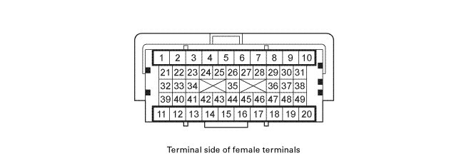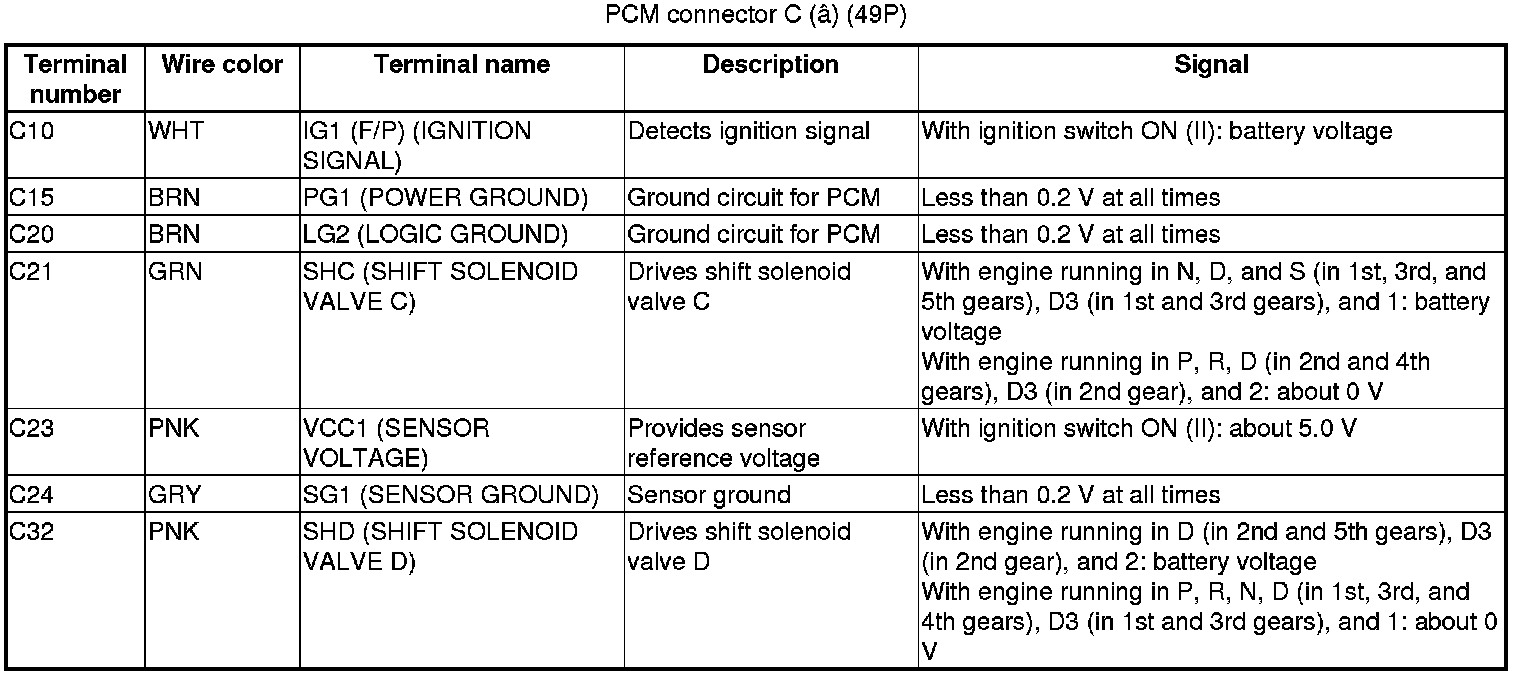 PCM A/T Control System Inputs and Outputs at PCM connector C (circle) (49P)