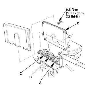 NOTE: PCM connectors A, B, and C have symbols (A=(square), B=(triangle), C=(circle)) embossed on them for identification.