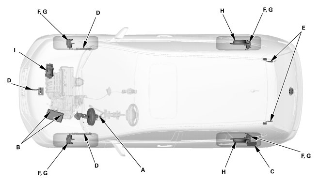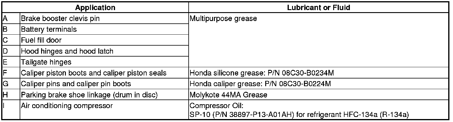 * Lubricate the following areas using the recommended lubricants and fluids.