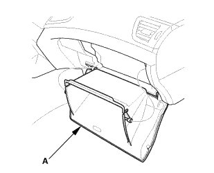 1. Lower the glove box (A).