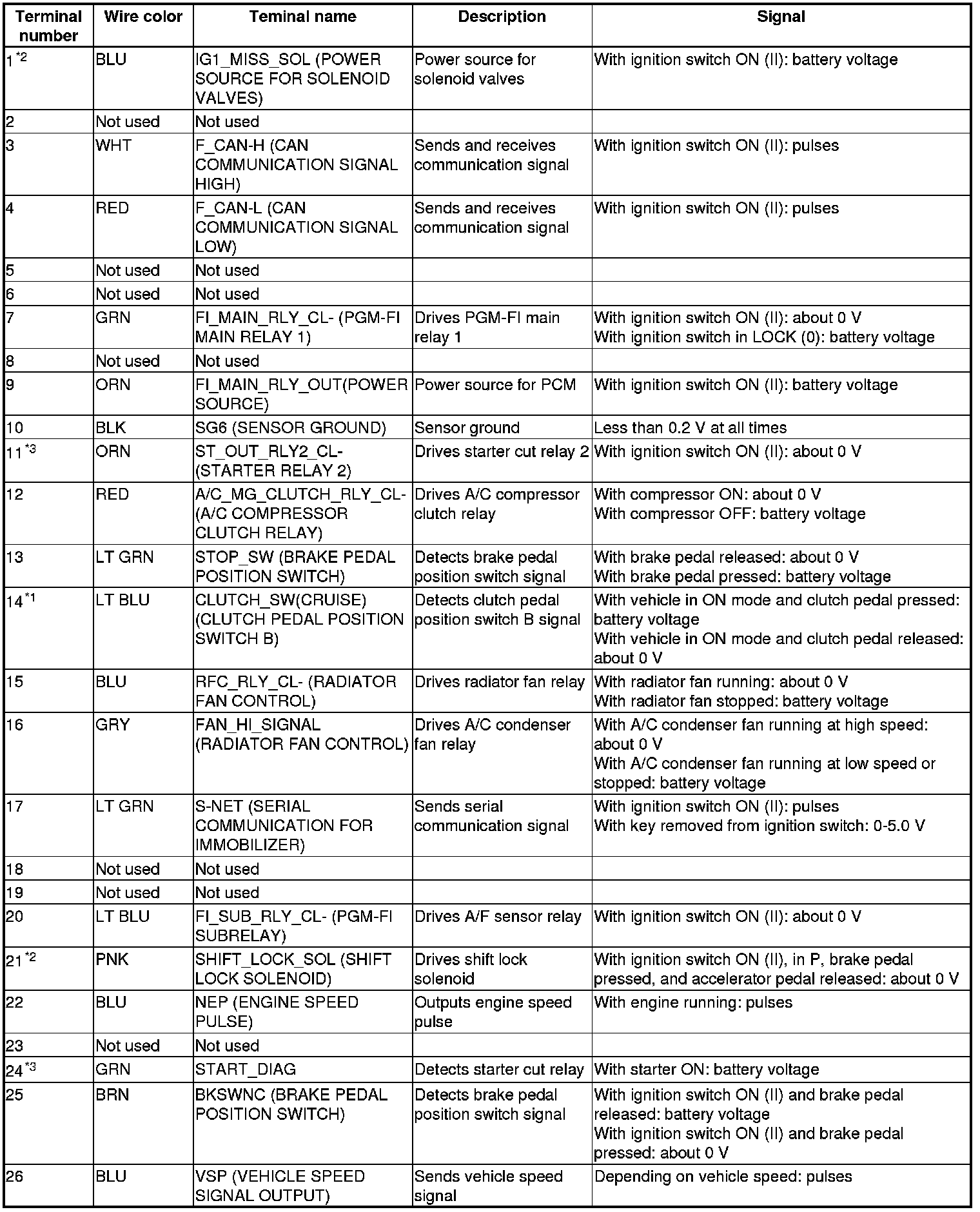 Pinout Values and Diagnostic Parameters