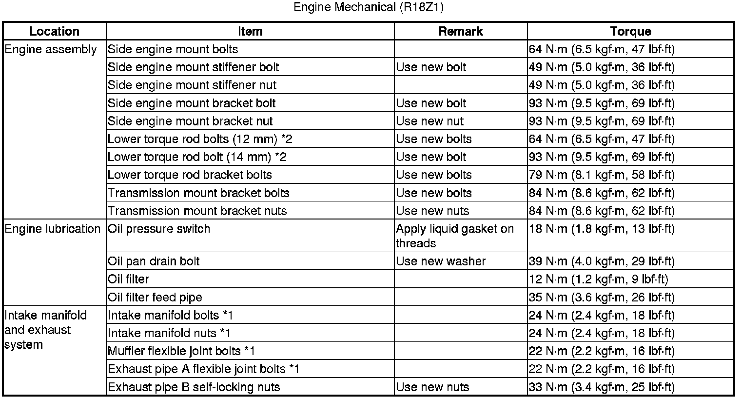 Home >> Honda >> 2012 >> Civic L4-1.8L >> Repair and Diagnosis >> Specifications >> Mechanical Specifications >> Engine >> System Specifications >> Torque Specifications