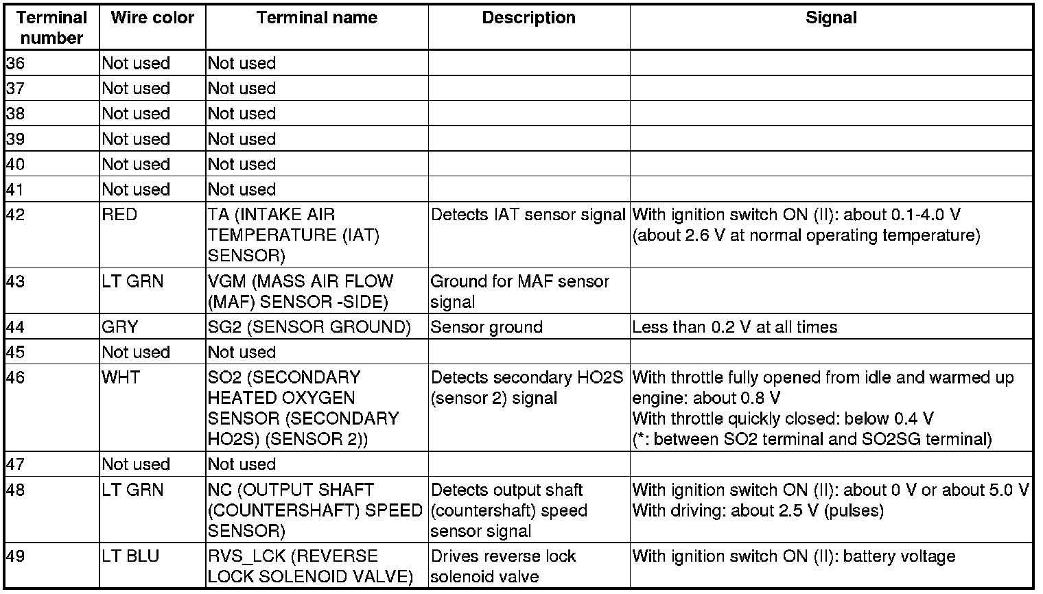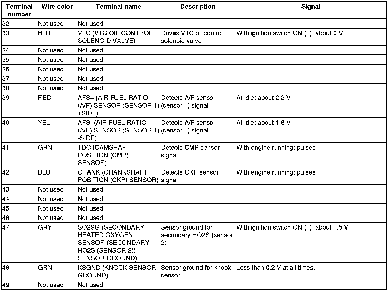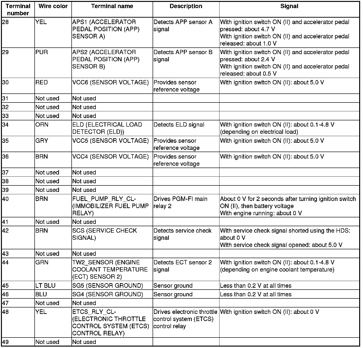 Pinout Values and Diagnostic Parameters