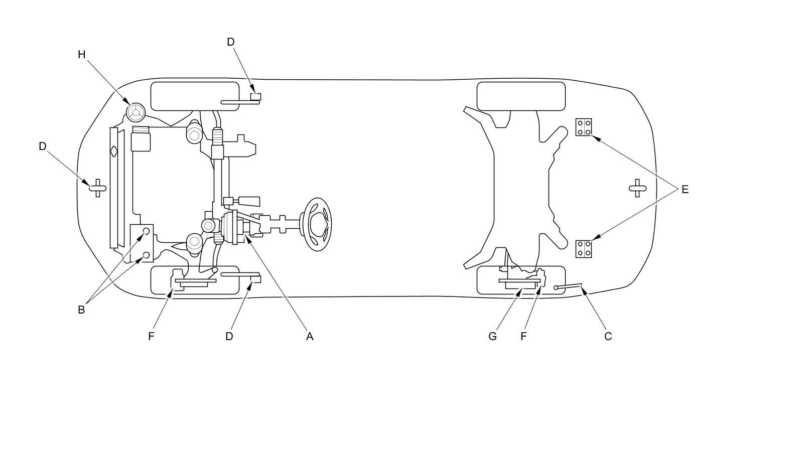 - Lubricate the following areas using the recommended lubricants and fluids.