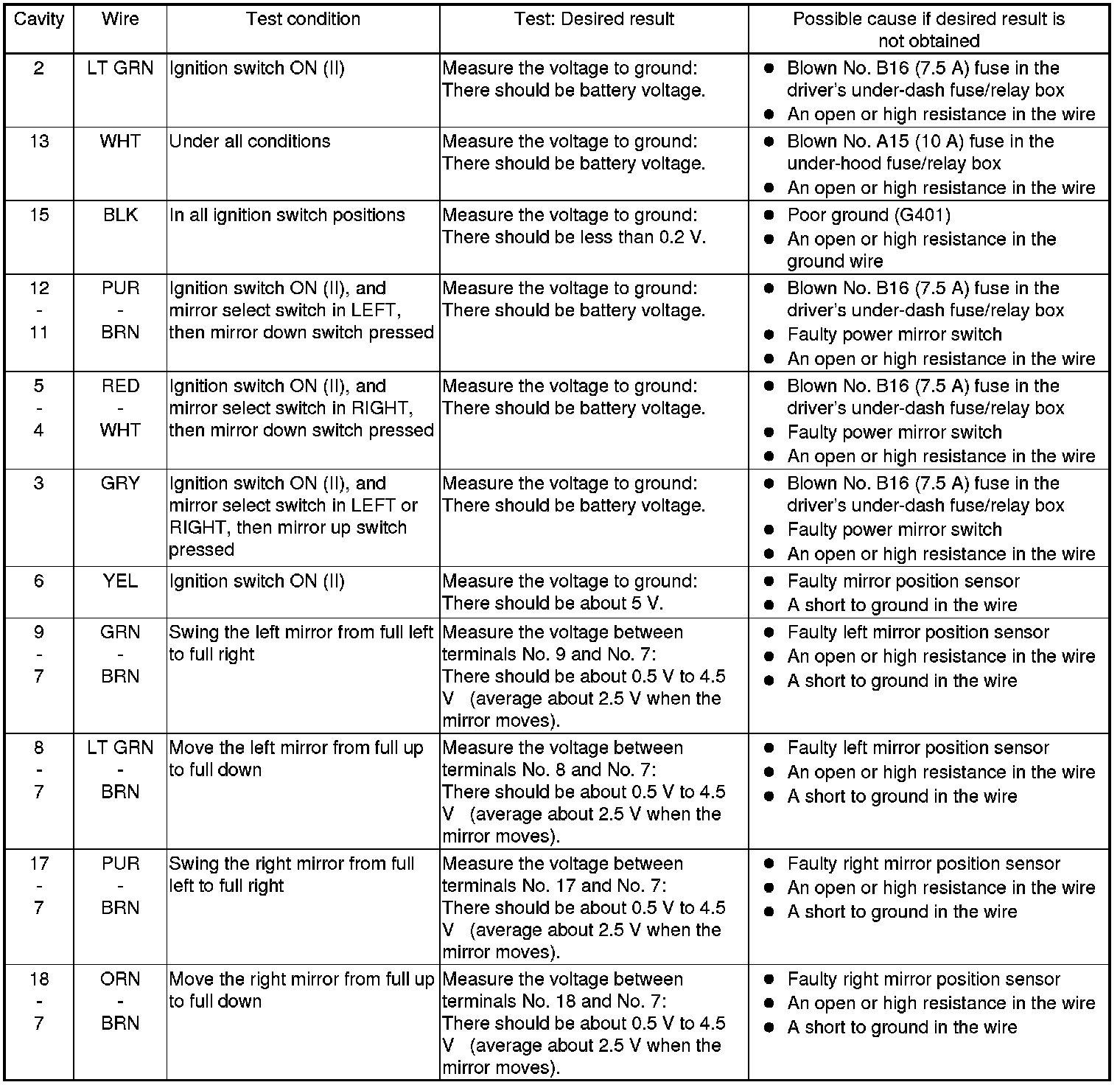 Power Mirror Control Unit Input Test/Replacement