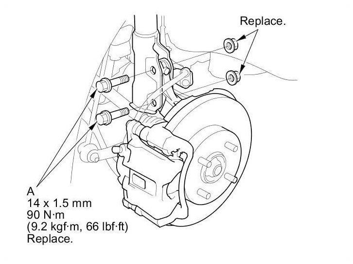 10. Replace the damper pinch bolts with the adjusting bolts (A), and adjust the camber angle.