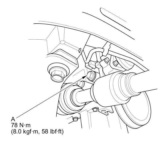 4. Remove the drain bolt (A) located at the rear of the engine block.
